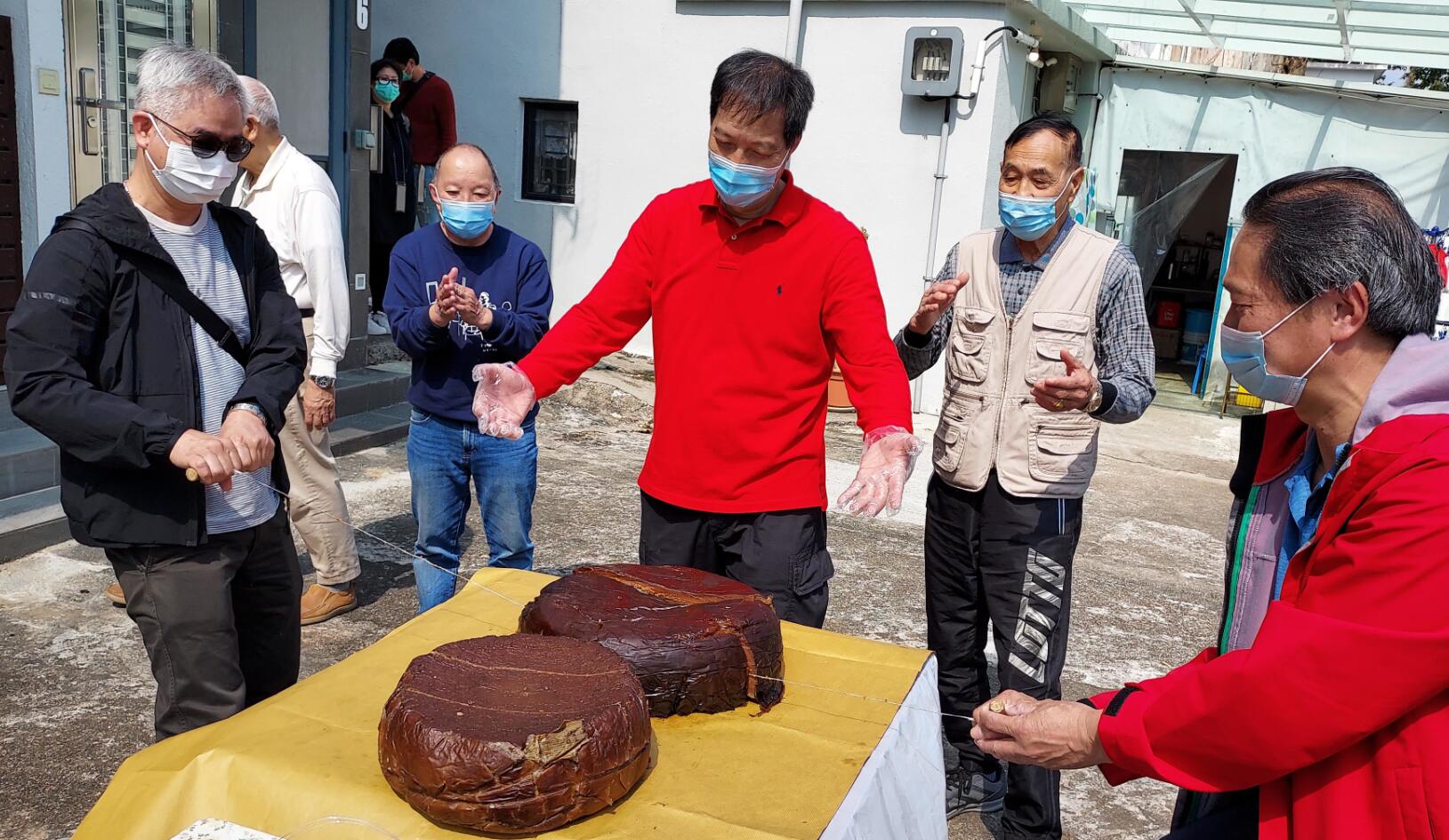 不過,這麼好兆頭的傳統客家食物,因疫情限聚民眾,根本不可以拿去天后宮,他一度猶豫是否要繼續,在年廿六最後一刻,他還是決定要做了,這天距離年初三切粿日還有一星期,可有充足時間讓做好的茶粿冷卻變硬。他決定做小一點的,因較容易做,同時在村裏分發,人不多,不會聚眾。