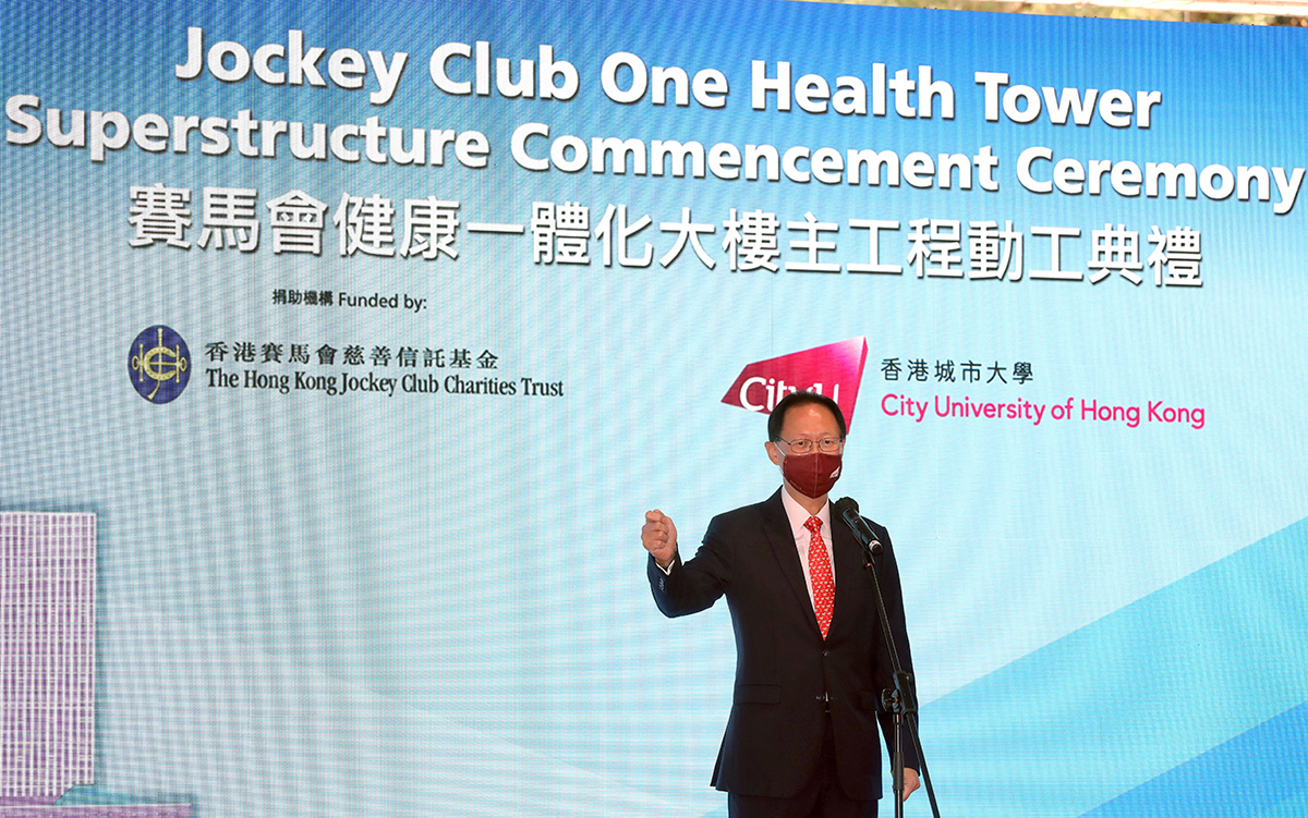 香港賽馬會捐助的「賽馬會一體化大樓」今日(2日)在香港城市大學舉行主工程動工典禮,賽馬會指慈善信託基金撥款5億元支持興建大樓,是基金對城大最大的單一捐款;賽馬會透露大樓在「健康一體化」概念下將發展爲動物醫學及生命科學的教研基地。