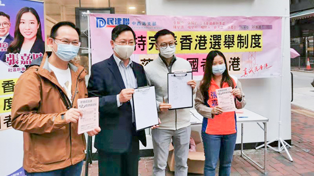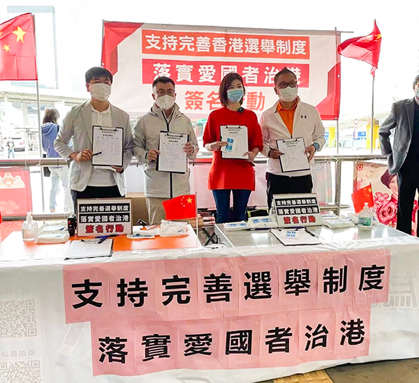 多個建制派政黨連日來在全港各區設置簽名街站,向市民宣傳「愛國者治港」的理念。創科局局長薛永恆今日(7日)亦到兩個民建聯設置的街站,呼籲市民簽名支持完善選舉制度,落實「愛國者治港」。