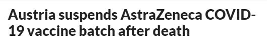 據路透社7日消息,奧地利當局已暫停接種一批阿斯利康新冠疫苗。此前,當地一名49歲女性在接種該批疫苗后因嚴重凝血功能障礙死亡,還有一名35歲女性在接種疫苗後出現肺栓塞,當局正在對此展開調查。奧地利聯邦衛生保健安全辦公室(BASG)稱,目前沒有證據表明這之間存在因果關係。