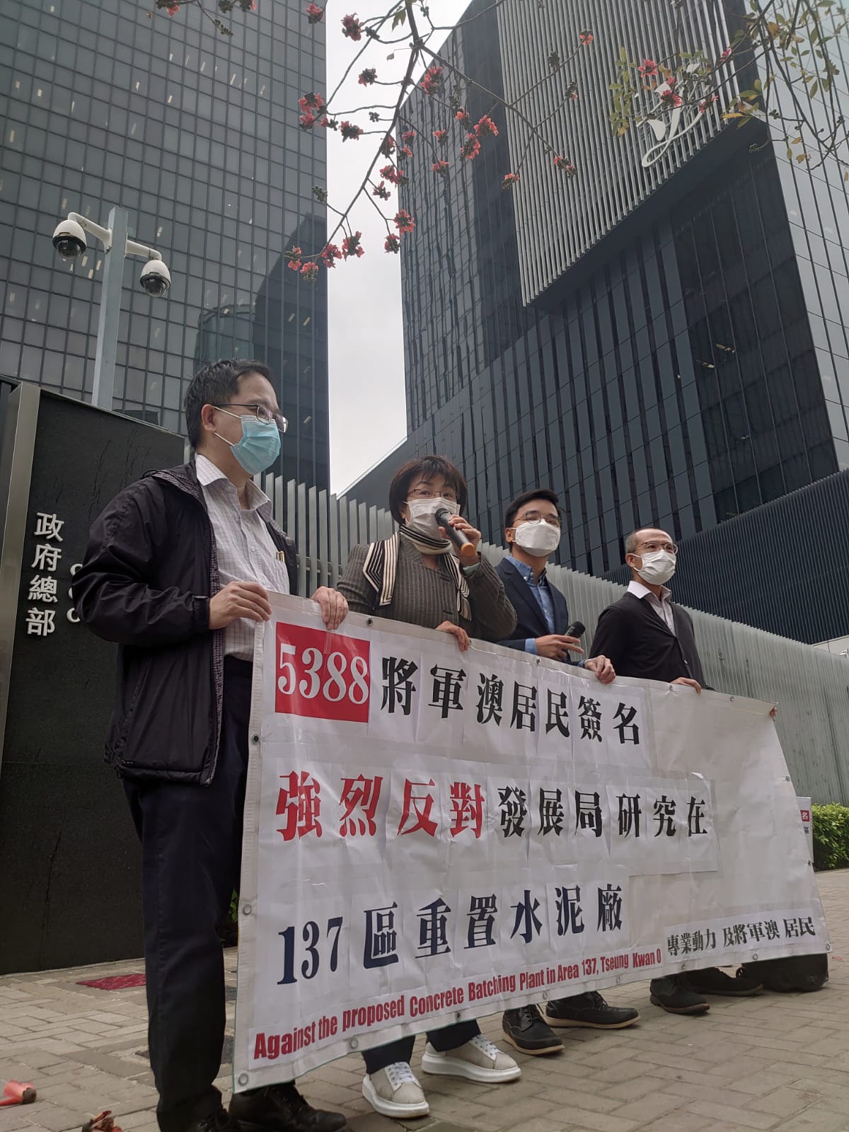 專業動力表示,今日(9日)到政府總部向發展局遞交請願信,促請局方另覓選址重置混凝土廠。
