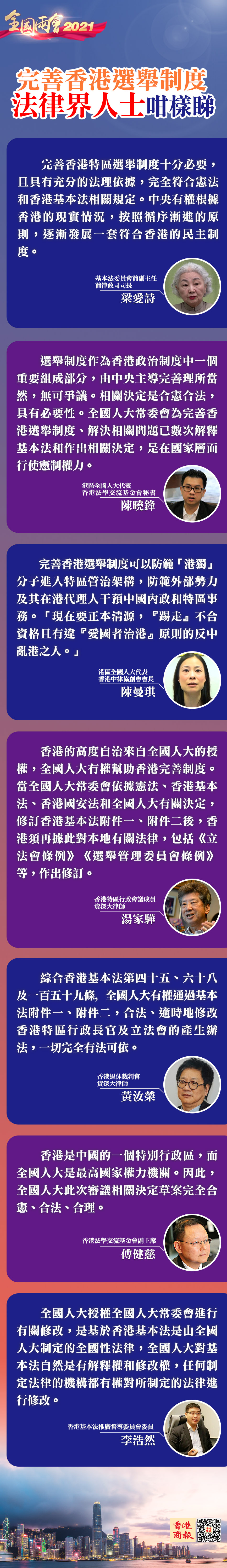 一圖知曉丨完善香港選舉制度 法律界人士咁樣睇