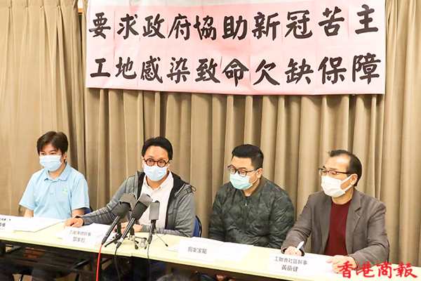 工聯會九龍東總幹事鄧家彪今日(10日)表示,工聯會早前接獲一宗疑與工地感染有關的新冠肺炎死亡個案,現正協助其家人追討合理合法的僱員補償。他說,死者是一名在工地感染新冠肺炎而致命的42歲在職人士蕭小姐,她於去年12月7日確診,並於12月12日死亡。他指出,蕭小姐確診時已陷入昏迷狀態,未能向政府清楚表明實際情況,致衛生署初步判斷為源頭不明個案,但衛生署後期已清楚知道死者與另一個案屬同一地盤工,但死者僱主仍拒絕承認事件屬於工地感染,須依僱員補償條例向其家屬負責及補償。