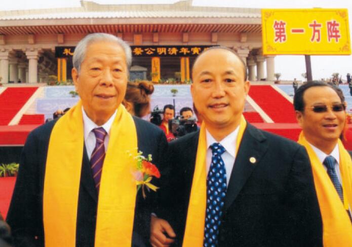 原全國政協常委、全國工商聯副主席、恒通集團創始人施子清(左)常常教育兒女感念鄉梓,不斷增加對祖國的投資項目。更認知說,國家富強了,香港的繁榮穩定才有基礎和保障。圖為與施乃康在黃陵祭祀時合影。