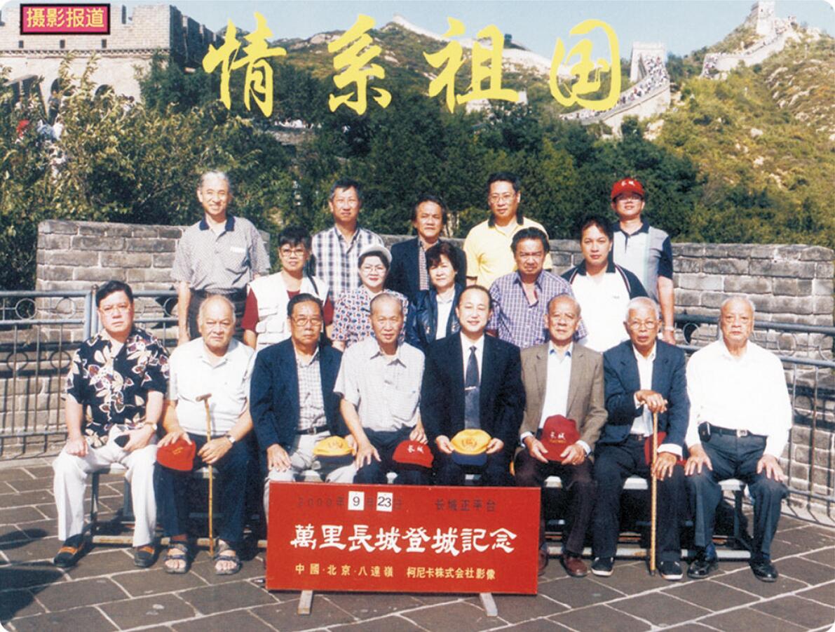 施乃康與來自菲律賓的世界臨濮施氏宗親創會會長施性答(左四)、施享利等施氏家族宗親領導們在北京八達岭長城上合影留念,之後他們選擇了在祖國各地、尤其是福建泉州市與晉江等地投資。