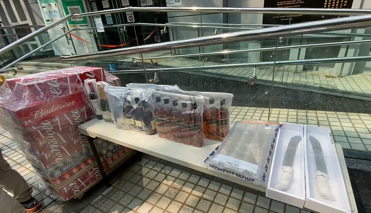行動中檢獲毒品、酒類飲品和牛肉刀。