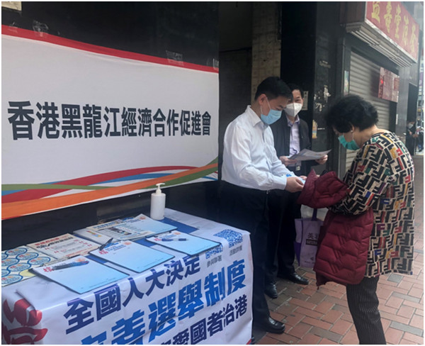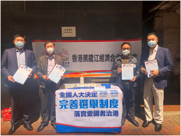 為堅決支持和擁護全國人大的決定,港龍會從3月11日開始設立街站,號召更多香港市民支持人大的決定。街站首日已獲香港市民積極響應,多位市民在簽字板下簽字支持全國人大的決定。