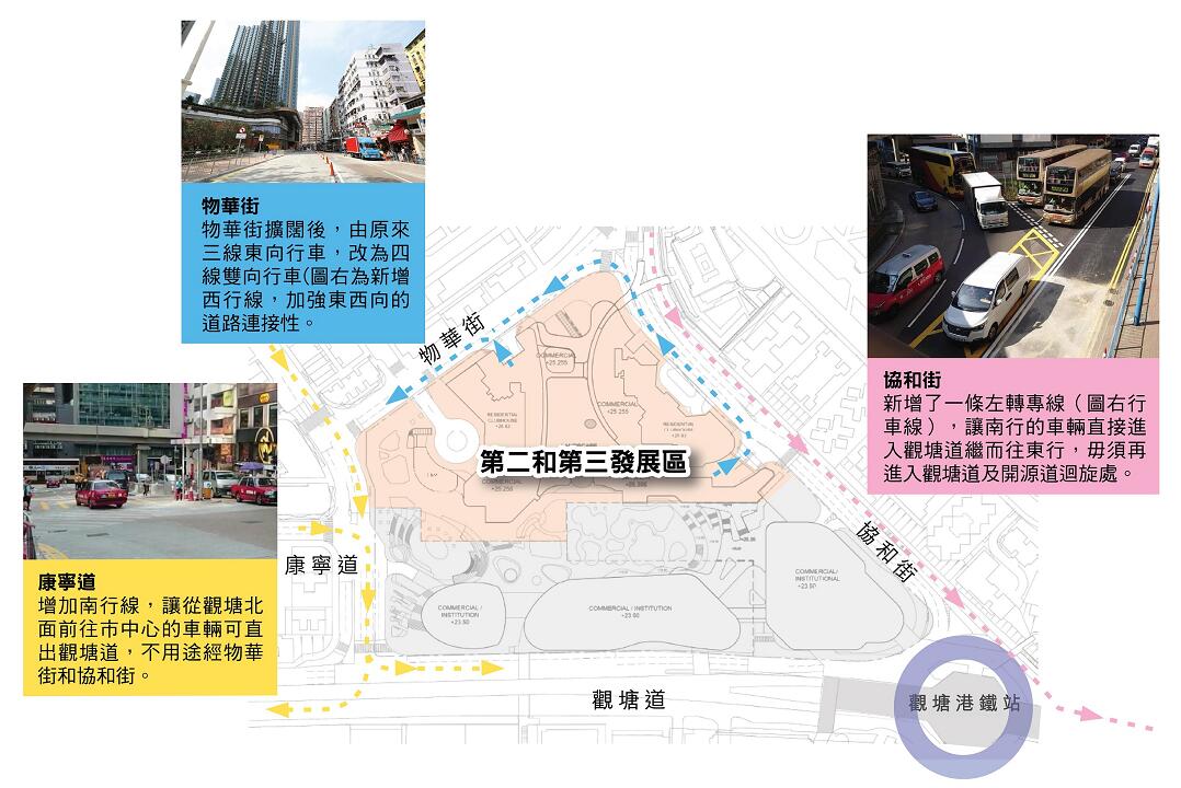 他又說,屆時巴士和小巴總站出口只可左轉,經物華街和康寧道進入觀塘道東或西行,其中西行車輛可直接離開市中心,減少迴旋處車流,紓緩道路擠塞。