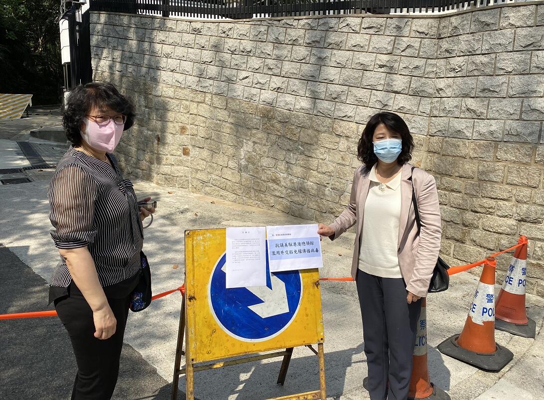 日前港島中半山帝景園強檢時發現2宗確診個案,為美國駐港澳總領事館人員,2人此前以外交豁免權為由拒絕接受隔離安排,在社區「播毒」,為防疫抗疫工作帶來巨大隱患。今日(17日)繼續有多批香港市民先後向美國駐港澳總領事館提出嚴正抗議。