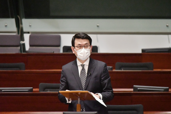 立法會17日首讀及二讀《2021年公職(參選及任職)(雜項修訂)條例草案》,政制及內地事務局局長曾國衛表示,《條例草案》原則只有一個,就是要準確落實有關公職人員的宣誓規定,履行特區政府的憲制責任,貫徹「愛國者治港」原則,讓「一國兩制」能夠行穩致遠。
