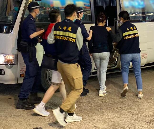 圖片說明:入境事務處於15日、17日及18日在全港各區展開代號「曙光行動」的反非法勞工行動,圖為懷疑非法勞工在行動中被捕。