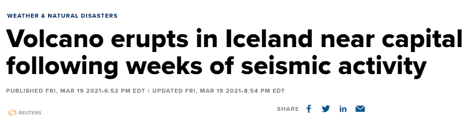 冰島在2010年亦有火山噴發,大量的火山灰令超過10萬架航班要取消,數以百計居民被迫逃離家園。氣象局初步估計,今次火山噴發不會引致大量的火山灰或煙霧。