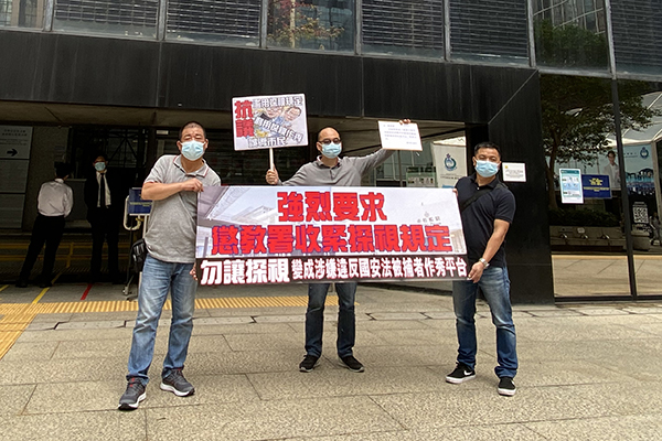 楊先生要求懲教署對被控顛覆國家政權等嚴重罪行的犯人,收緊探視規定,減少反中亂港份子做政治秀的機會。今日灣仔懲教署總部並沒有派員接信,他們把請願信投遞到樓下信箱後和平散去離開。(記者 李銘欣)