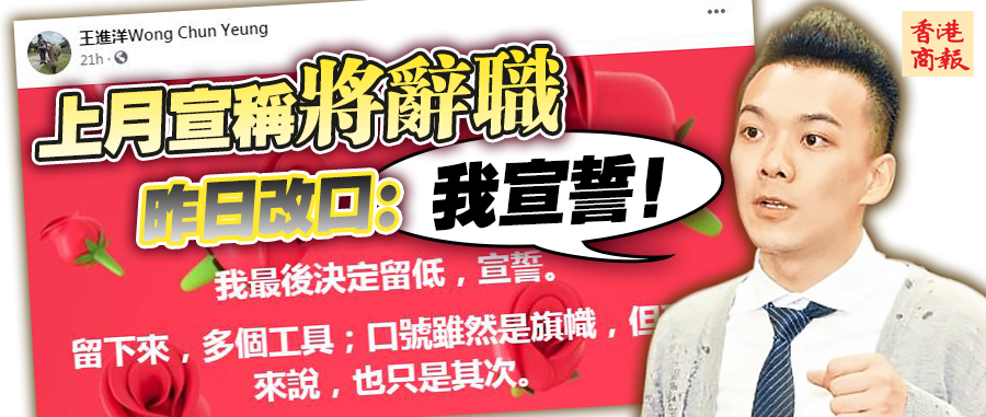 到星期二(16日),他就改口說目前想法是「辭職佔六成、留低佔四成」,擔心區議員資源會落入「對家」手上。