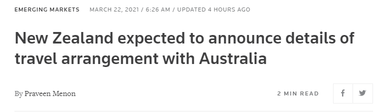 阿德恩沒有透露具體細節或兩國將在何時啟動免隔離旅行。據當地媒體消息,這項計劃可能在4月底開始。阿德恩預計在22日晚些時候召開內閣會議後,舉行新聞發布會並宣布決定。
