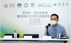 由香港創新醫療學會主辦、展貿配協辦的「新常態、創科新思維—粵港澳新冠疫情面面觀」網上研討會於20日舉行。