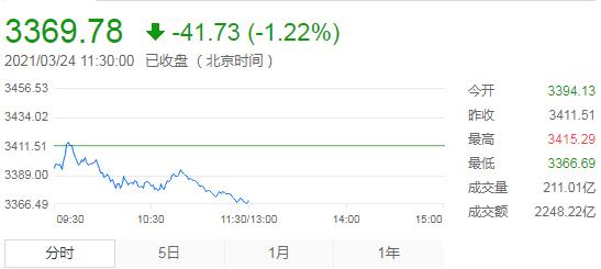 3月24日,星期三,農曆二月十二。隔夜美股大跌,今日早盤,A股三大指數全線低開,開盤後有短時反抽,隨後走出震蕩下行走勢,三大指數集體跌逾1%。開盤後小幅拉升,一度翻紅,而後震蕩下挫至集體跌逾1%,板塊方面,白酒股異動拉升,券商板塊繼續走高,鋼鐵板塊走弱。