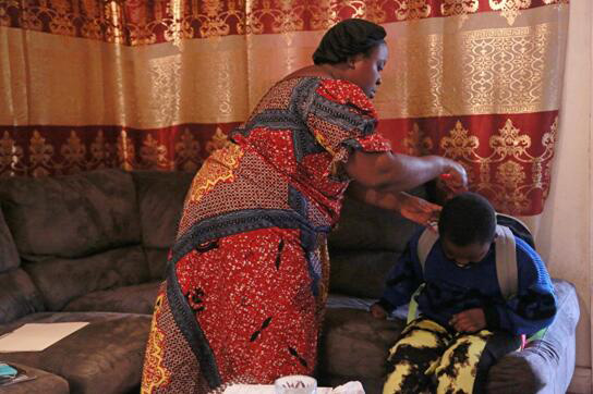 當地時間3月17日,在美國肯塔基州,學校因疫情限制措施關停後重新允許返學的第一天,校車抵達之前,一位母親為她的女兒梳理頭髮。