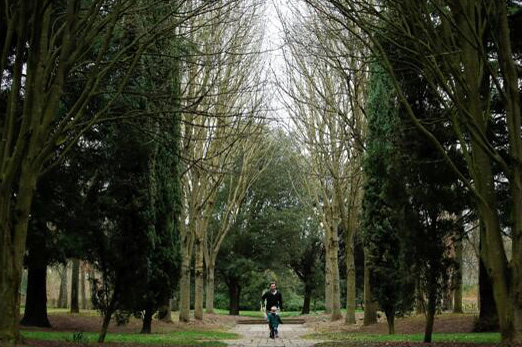 當地時間3月18日,在英國米爾頓凱恩斯的「樹木大教堂」,一家人在邊走邊玩。「樹木大教堂」的建築幾乎全部由樹木構成,置身其中,猶如置身森林中。