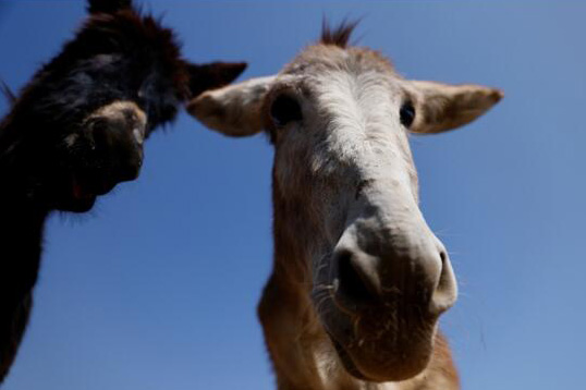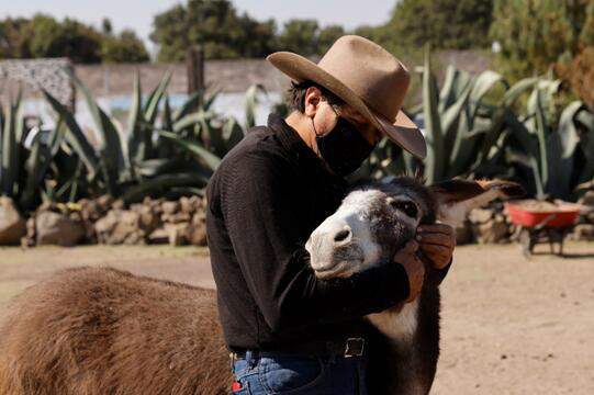 當地時間3月20日,在墨西哥,Burrolandia-Donkeyland(一個動物保護區,主要收容曾遭虐待的驢子和其他動物)創始人German Flores在擁抱一頭從虐待和遺棄行為中獲救的驢子。