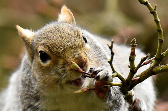 當地時間3月23日,在愛爾蘭都柏林國家植物園,一隻可愛的灰松鼠在吃堅果。