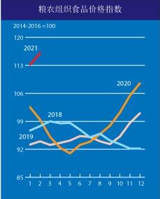 糧農組織食品價格指數在2021年2月平均為116.0點,環比上升2.8點(2.4%),連續第九個月上揚,並創下自2014年7月以來的最高水平。