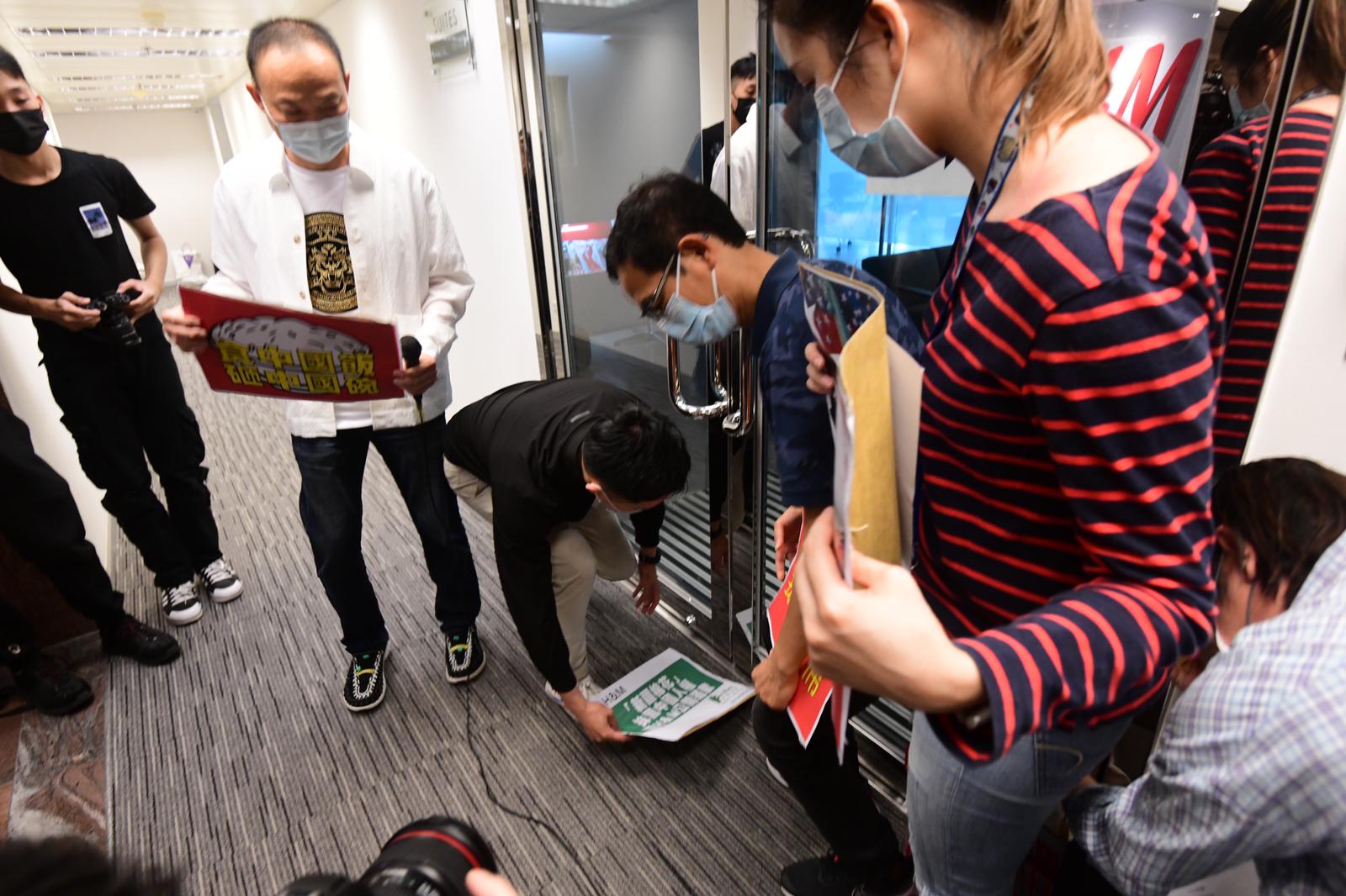 H&M寫字樓今天無人辦公,請願者把抗議信遞入門縫後,和平散去離開。(記者李銘欣)