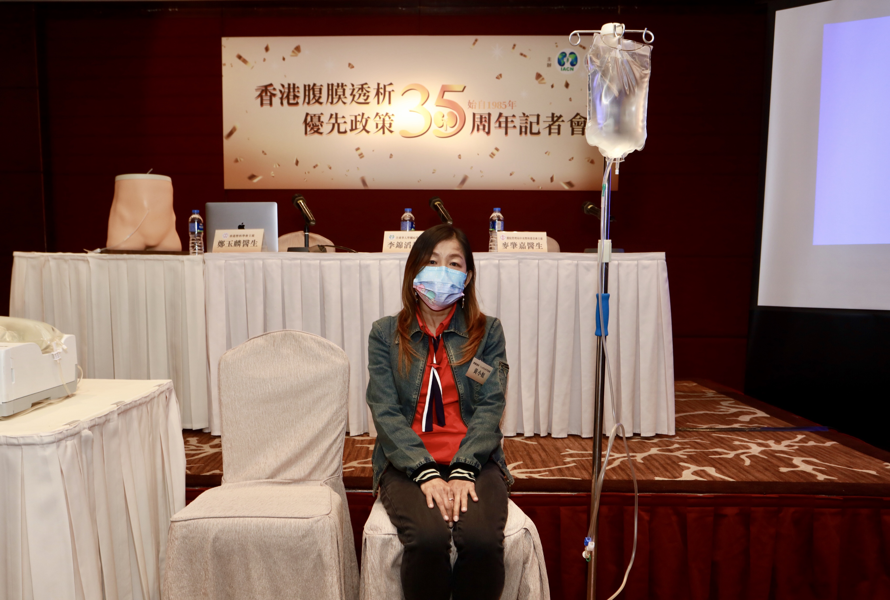 黃女士接受了腹透治療33年,她很感恩能夠得到腹透治療,並提到除了要換洗肚水外,生活跟平常人一樣,可以全職上班和出外旅行。