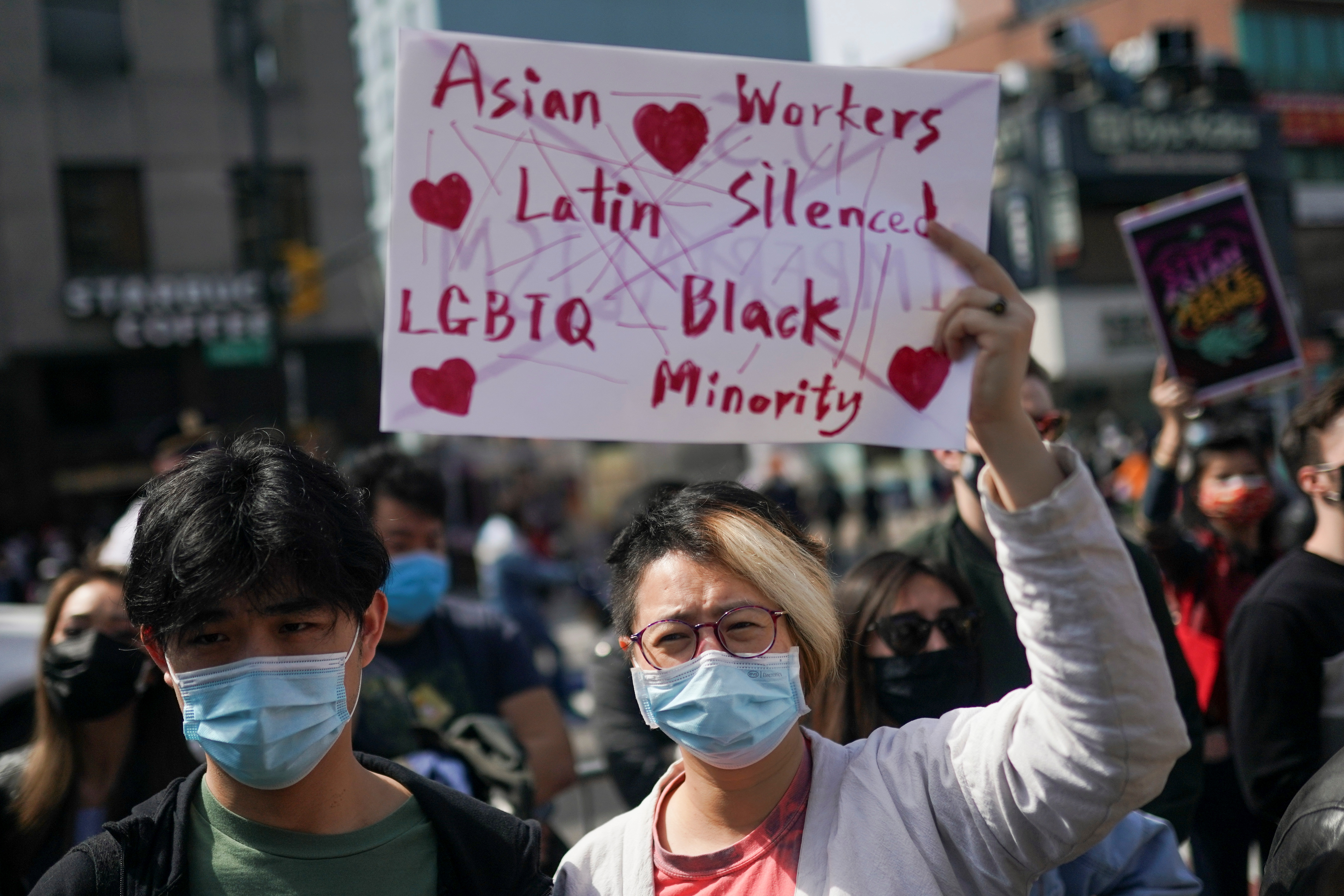 當地時間周六,大批民眾在加州洛杉磯示威遊行,抗議「針對亞裔犯罪」及白人至上主義,呼籲美國社會關注亞裔女性。 路透社