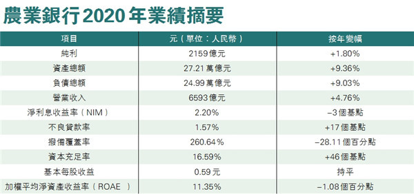去年12月,人行和銀保監會發布系統性重要銀行的資本補充新規。農行行長張青松表示,農行研判後預計該行不存在顯著的資本補充壓力。他表示,農行現已達到可比同業的平均水平,能夠支撐業務的可持續發展,2021年沒有較大金額的資本發行計劃,將加強資本節約,以內生性的方式來補充核心資本。