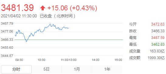 截止午間收盤,滬指漲0.43%,報3481.39點,深成指漲1.16%,報14142.43點,創業板指漲1.58%,報2859.77點。滬深兩市成交額4510.9億元。兩市60股漲停,7股跌停(含ST)。備注:滬深股通北向交易從4月1日起關閉,4月7日恢復交易。