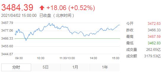 截至收盘,沪指涨0.52%,报3484.39点,深成指涨1.02%,报14122.61点,创业板指涨1.31%,报2852.23点。沪深两市成交额7167.1亿元。两市93股涨停,11股跌停(含ST)。备注:沪深股通北向交易从4月1日起关闭,4月7日恢复交易。