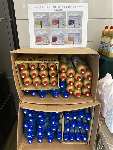 海關總貿易管制主任陳國雄今日會見傳媒時表示,海關早前接獲舉報,連鎖零售店舖的荃灣分店及沙田分店涉嫌出售違規家居清潔用品。海關隨後在6間分店,涉及旺角、沙田及荃灣等,並試購14款產品。經調查後,海關發現相關產品的包裝資料上,並無標示中文警告或警示字句,當中12款只有泰文警告或警示字句,其餘2款只有泰文及英文警告或警示字句,未有中文版本。當中有清潔劑註明要用膠手袋保護下使用,有沐浴露不適合3歲以下小童使用。
