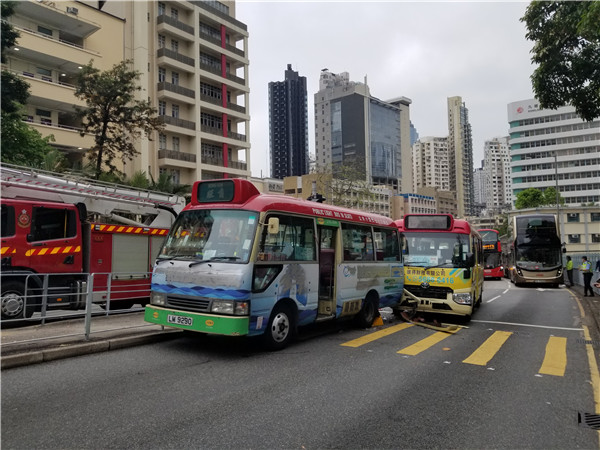 今日(9日) 中午12時許,一名男子駕駛電單車沿何文田培正道向何文田邨方向行駛,途至民豐徑一個交通燈位時突然掉頭,尾隨一輛小巴駛至,司機見狀慌忙煞車,另一輛從後駛至小巴收掣不及,導致兩輛小巴首尾相撞,兩車上10多名乘客猝不及防,分別扭傷頭頸和撞傷手腳,消防和多輛救護車接報到場,將傷者救出,在現場分流和包紮,分送往兩間醫院救治。稍後電單車司機被警方尋回,返到現場協助調查。(記者 區天海)