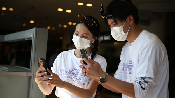 陳澤言 、劉瑞祈和張凱娸在赤柱廣場太空站起步點出席「Stanley Plaza x FOODSPORT 食物救援 - 城市定向挑戰賽2021」活動 。