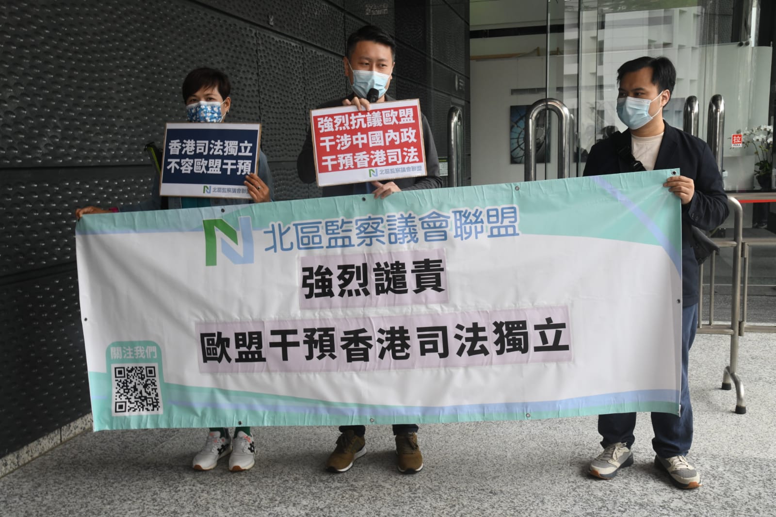另外,北區監察議會聯盟也到場請願,批評歐盟將法庭判決與香港民主進程混為一談,指相關聲明罔顧事實,嚴重干預本港司法獨立,對中國內政說三道四,對此表示強烈不滿。(記者馮煒強)