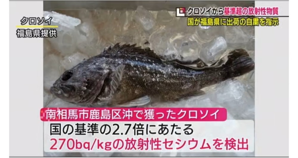 據日本媒體援引福島縣消息,本月1日在福島縣海域捕撈的一條黑鮋,體內被檢測出270貝克勒爾放射性物質銫 ,超出《食品衛生法》所規定的標準值。今年2月,福島縣漁業協同組合聯合會在試驗打撈作業時就發現該縣黑鮋體內所含放射性物質超標,並已主動停止黑鮋上市。
