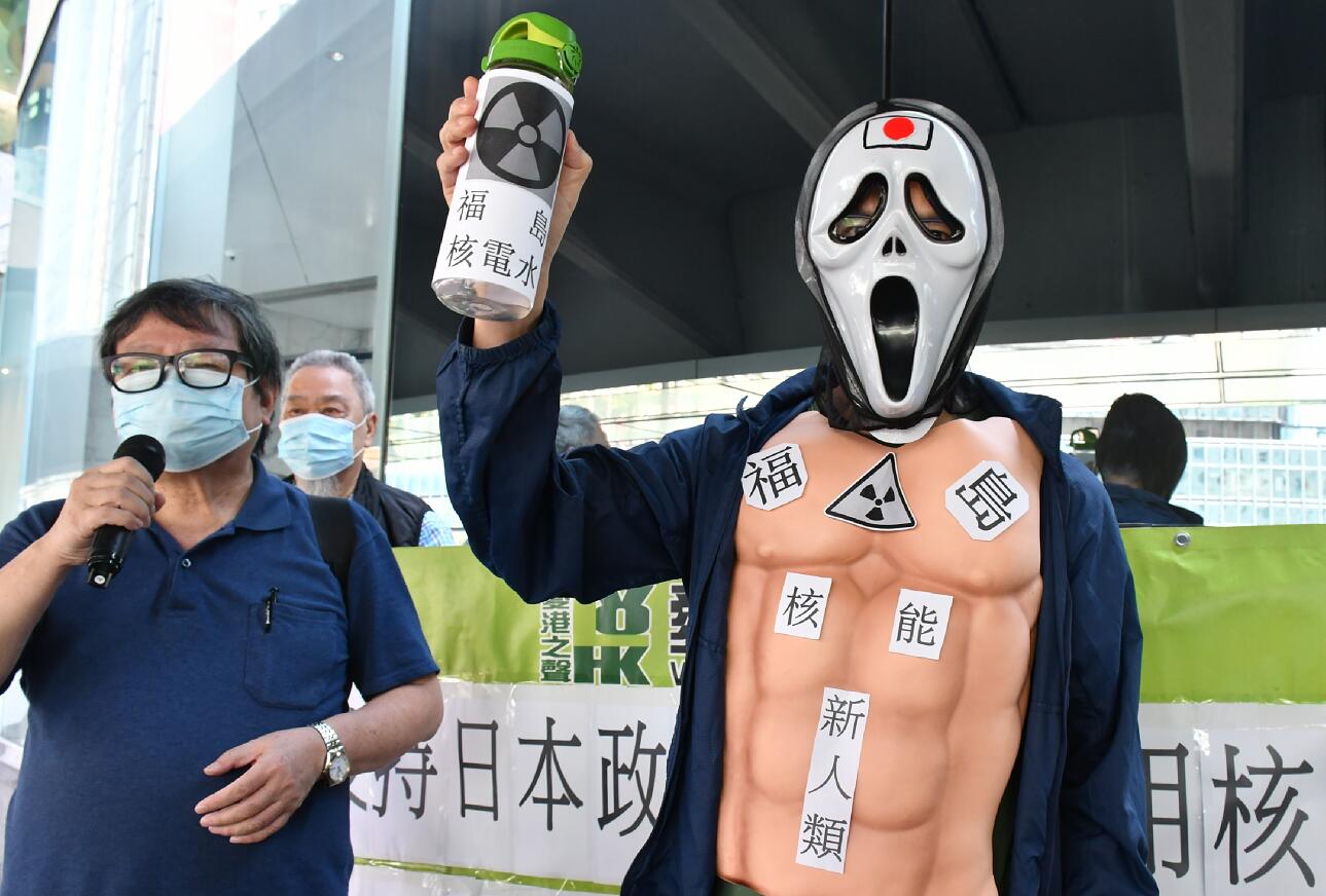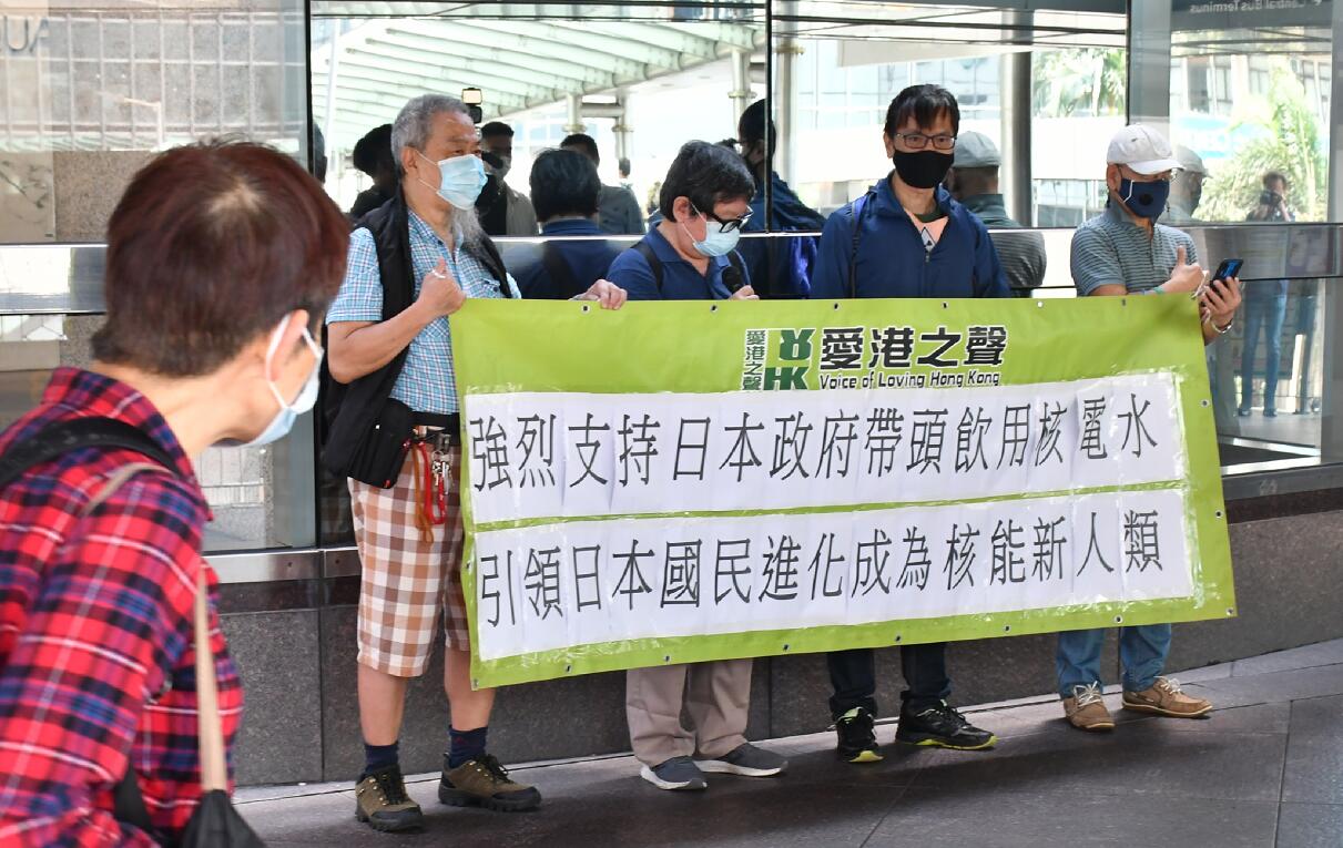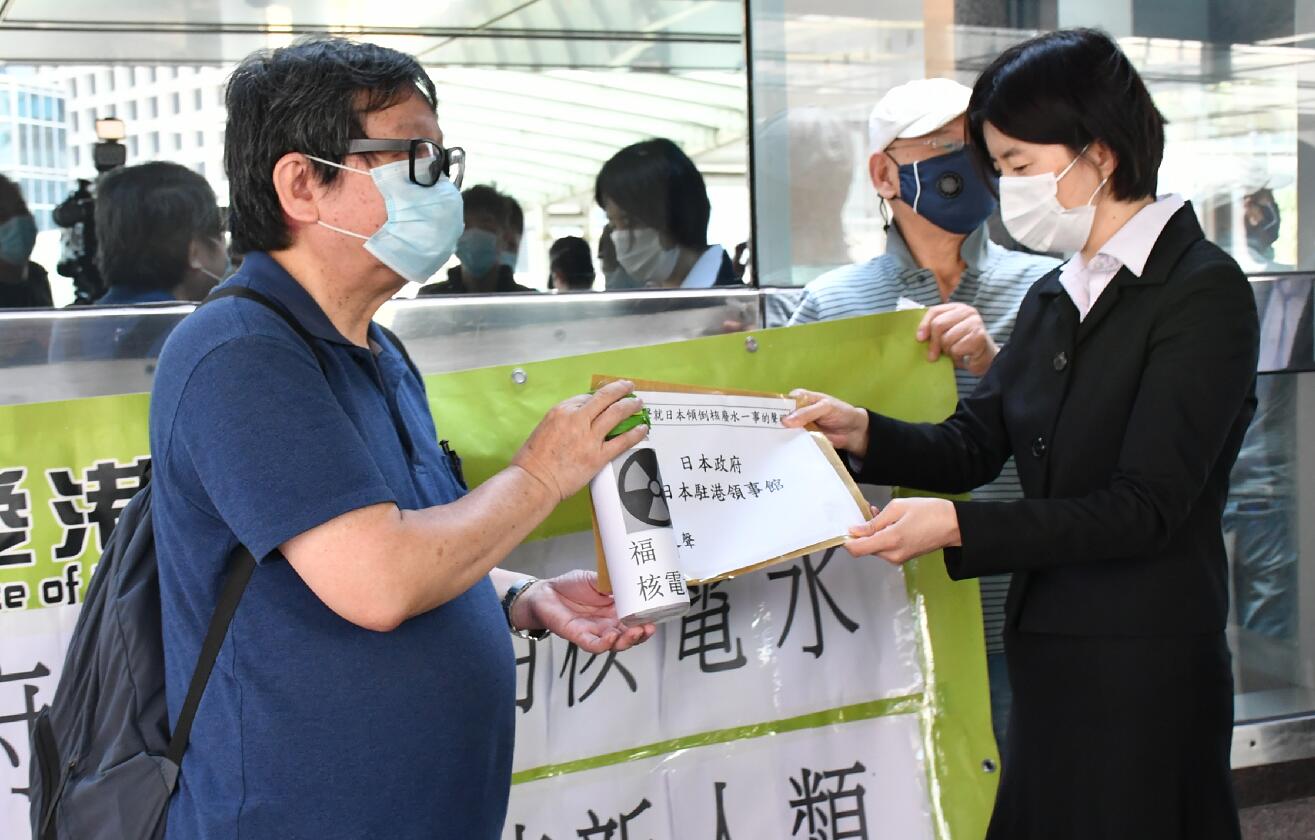 團體「愛港之聲」今天(21日)舉橫幅從中環地鐵站口遊行至日本領事館樓下,抗議日本政府決定把福島核廢水傾倒入海,並向日本駐港領事館代表遞交請願信。