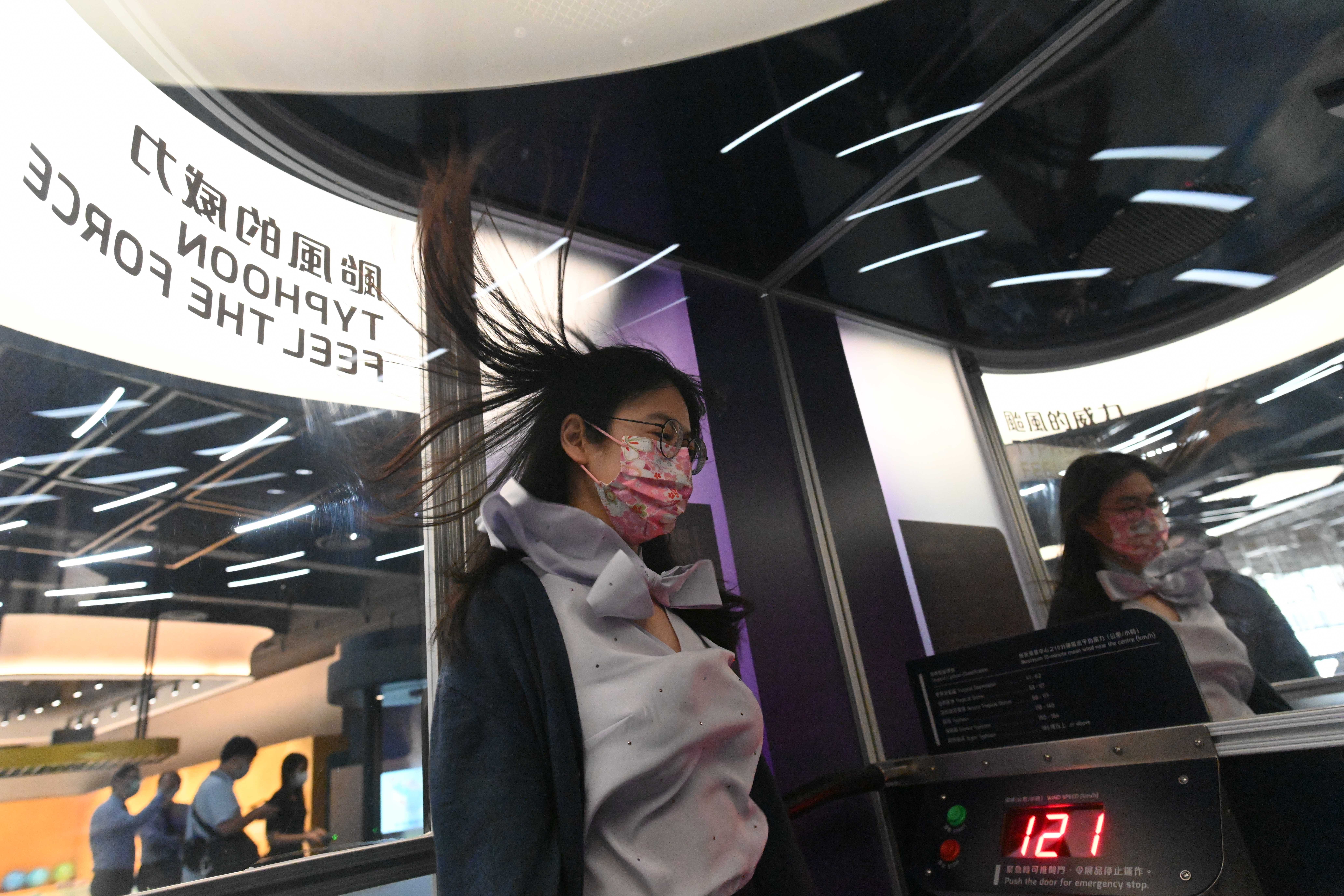 圖為颱風模擬室,參觀者可親身體驗每小時高達約120公里風速的威力