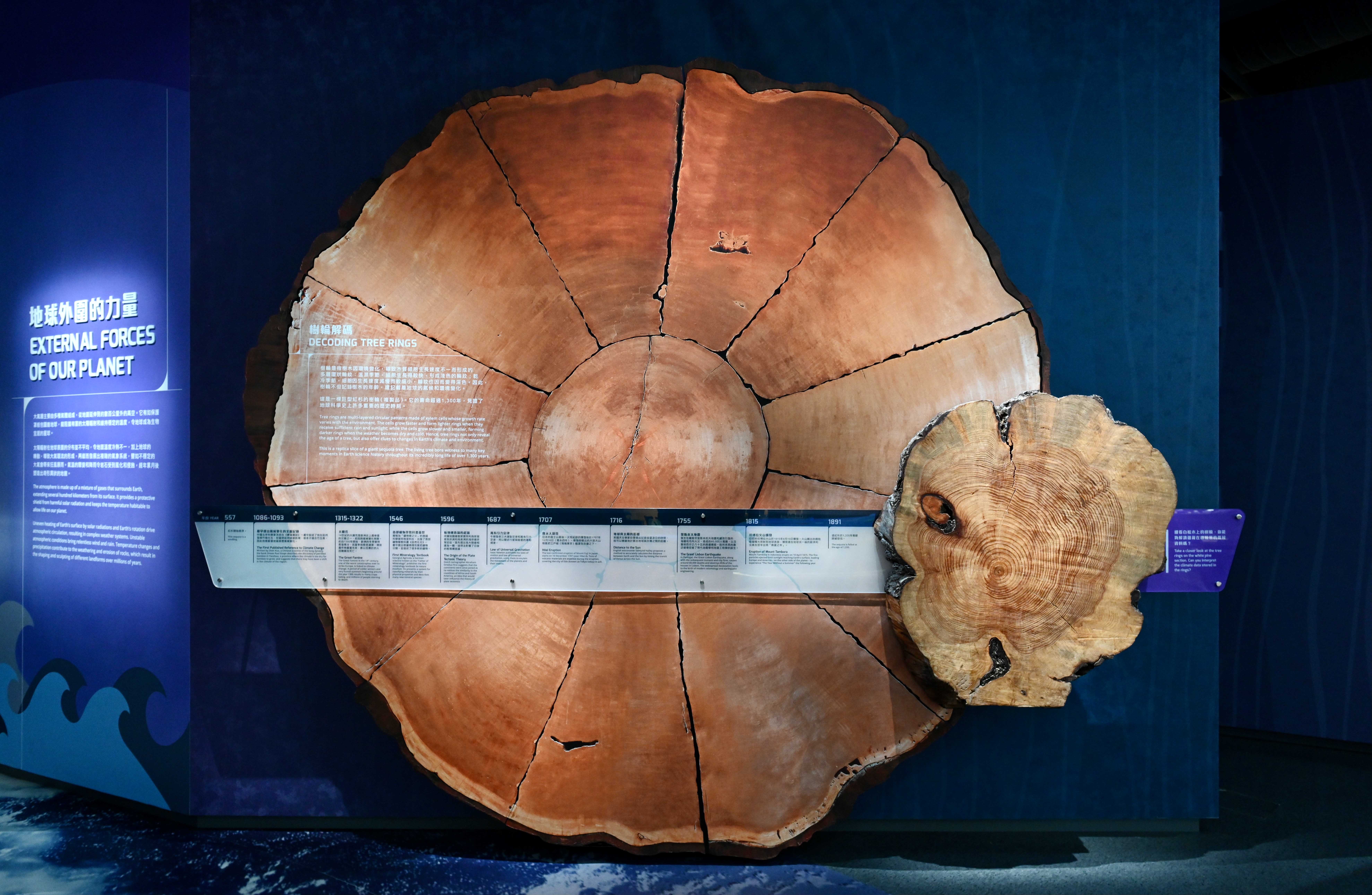 圖為以真實樹輪製作的展品,解構其與氣候變化的關係