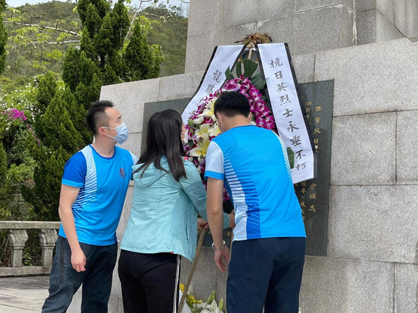 今日(24日)上午,香港愛國愛港青年社團「龍騰志青」近40名青年在汪紅會長帶領下一同前往位於西貢斬竹灣的抗日英烈紀念碑瞻仰及獻花。上午9時30分,儀式正式開始,青年們神情莊重嚴肅,懷著崇敬與感恩的心,手捧鮮花,緬懷英烈,表達對他們深深的敬意和無盡的哀思,及後在紀念碑前高唱國歌。