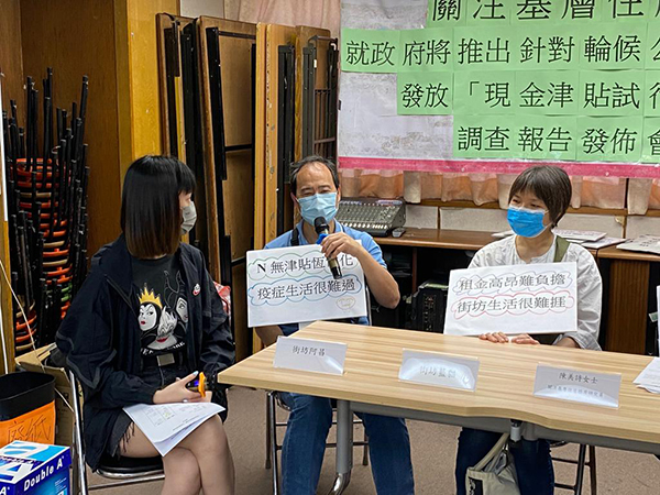 關注基層住屋聯席指政府在今年《施政報告》提出推行為期3年的現金津貼試行計劃,為輪候公屋超過3年之基層家庭每月提供現金津貼;聯席為了解有機會或正在申請公共房屋的市民——有關津貼之潛在申請者對計劃的意見,於14至24日進行問卷調查,獲得183份有效答覆,當中有95.6%受訪者贊成「現金津貼試行計劃」及「非公屋、非綜援的低收入住戶一次過生活津貼」應同時推行。