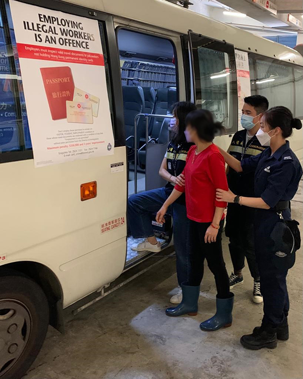 入境處表示,被捕懷疑非法勞工為年齡介乎20至51歲之2男1女,當中2名男子持有不允許僱傭工作的擔保書;1名男子亦涉嫌管有及行使懷疑虛假文書;至於因涉嫌聘用非法勞工被捕之僱主則是年齡分別為60及46歲的1男1女。