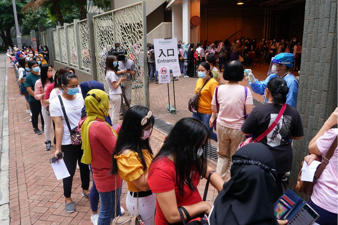 多個流動檢測站及社區檢測中心昨大排長龍,在維園專為外傭而設的流動檢測站,一度有逾百人輪候;在油麻地社區中心排隊等檢測的人龍一度延伸到廣東道;在沙田市中心的流動檢測車,人龍一度延伸至沙田法院。有排隊等候檢測的外傭表示,由於疫情嚴重,認為定期接受檢測是好事,自己會減少外出,多進食營養補充劑等,增強抵抗力。