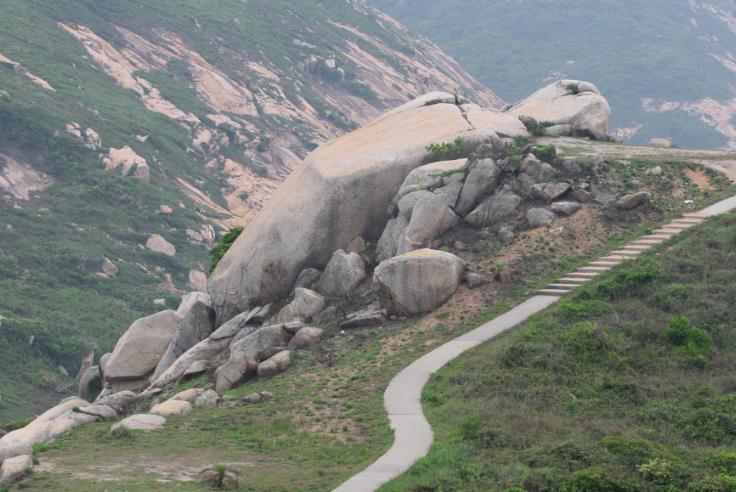 蒲台島的花崗岩地貌受遊客歡迎,如圖中的靈龜石似正在爬行狀。