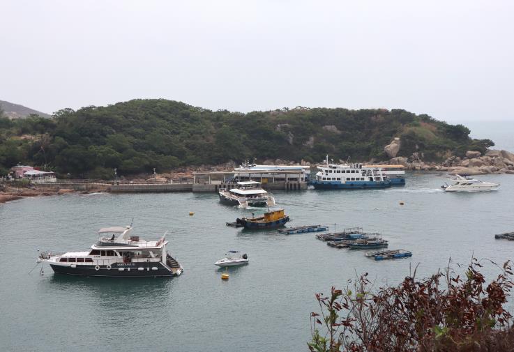 4月初復活節假期,蒲台島碼頭遊艇穿梭往來,幾艘街渡泊岸候客。記者 鄭玉君攝