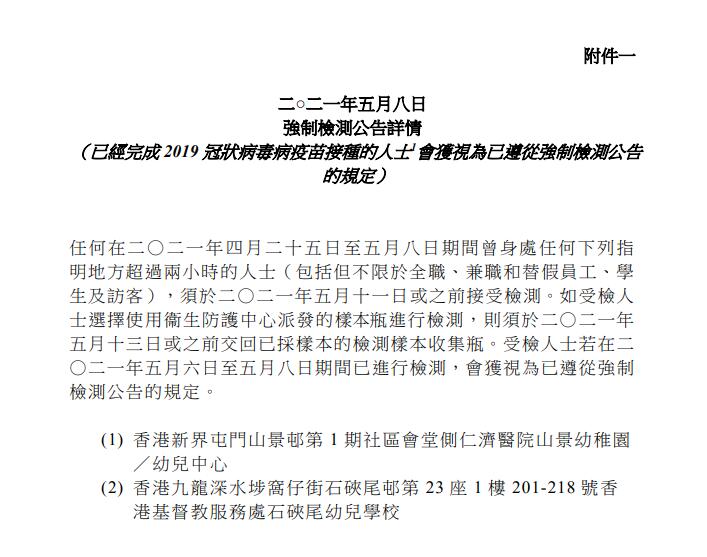 港府8日晚間就強制檢測公告刊憲,要求於指定期間,曾身處兩個指明地方的人士接受新型冠狀病毒檢測。