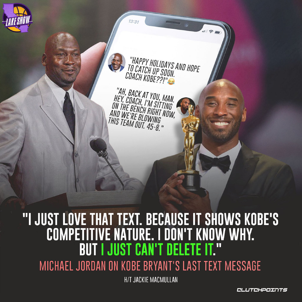 喬丹表示,我非常喜歡這條短信,因為這展現出科比的競爭性。我不知道為什麼,我就是無法下定決心刪除它。