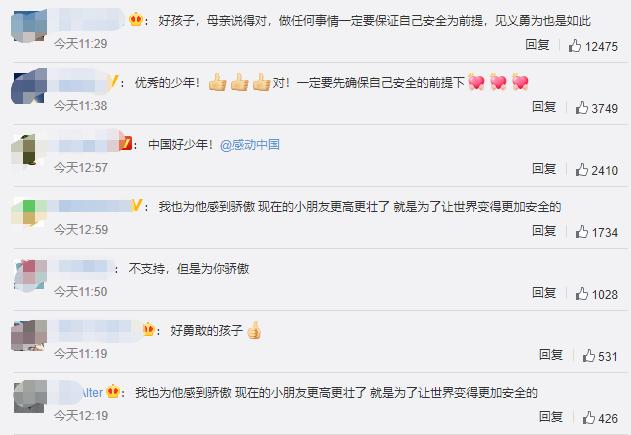 網友紛紛為這位少年的行為點讃,同時也有很多人表示:精神可嘉,但不提倡,未成年人一定要先保護好自己。