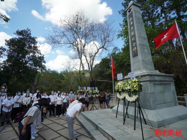 為慶祝中國共產黨成立100周年,香港廣州社團總會、市屬團體合辦重溫抗日史蹟,緬懷革命先烈紀念中國共產黨成立100周年活動。4個團隊合共約百人今日到烏蛟騰抗日紀念碑舉辦活動,他們默哀、獻花等,最後大合唱向抗日烈士送上一曲歌唱祖國。